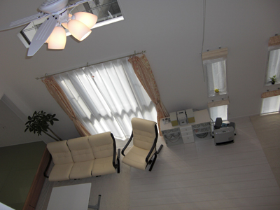 ・2Fにリビングをもって来た事により、天井を高く出来、開放的な空間が造れた。